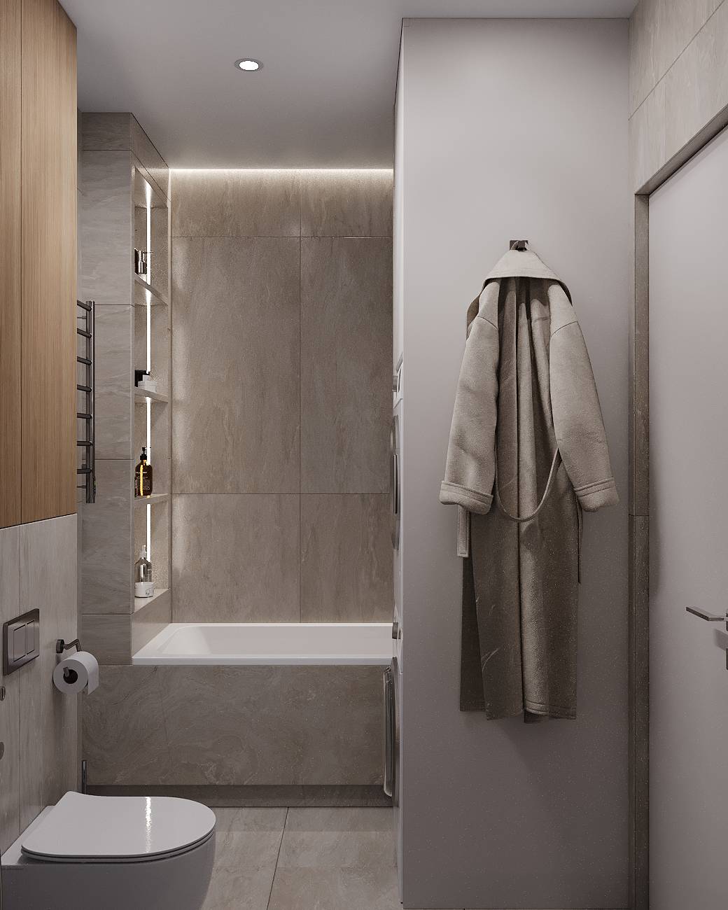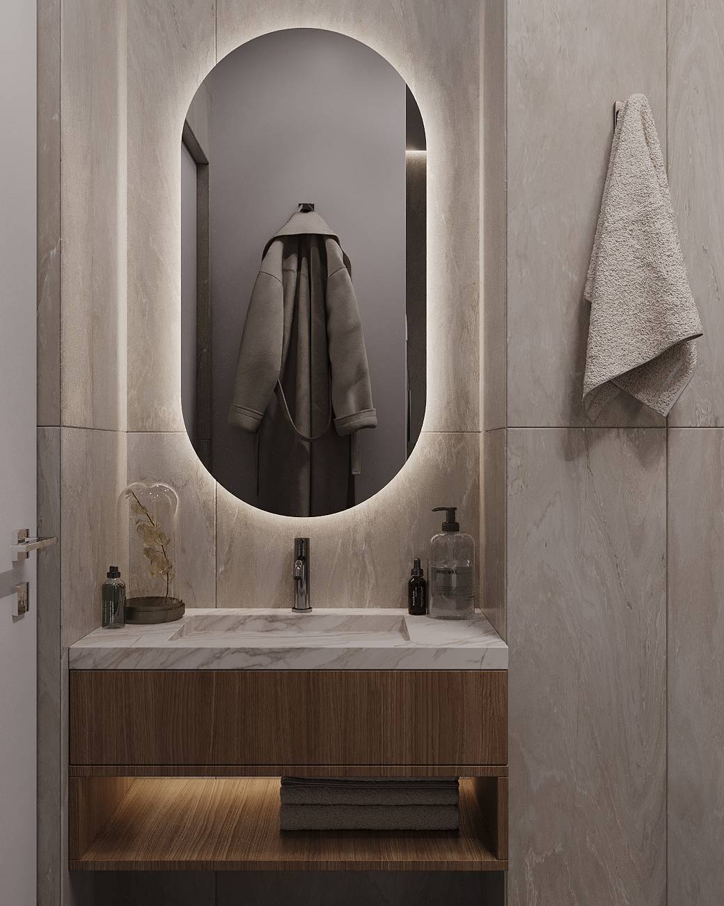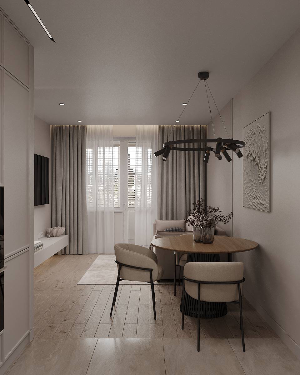 Проект квартиры в ЖК «Резиденция Грин Парк» площадью 47 м² ориентирован на сочетание функциональности и визуальной легкости. Пространство зонировано так, чтобы обеспечить комфортное проживание в рамках ограниченной площади. Кухня-гостиная совмещена и оформлена как основная зона общения и отдыха. Спальня уединённая, с местом для хранения. Прихожая компактная, с продуманной системой организации вещей. Санузел выполнен в лаконичном стиле, обеспечивая всё необходимое для ежедневного использования.