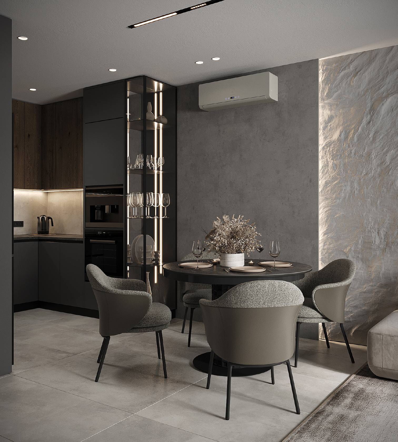 Проект квартиры в ЖК «Романовский 10» площадью 75 м² ориентирован на создание стильного и сбалансированного пространства для комфортной жизни. Планировка включает в себя просторную кухню-гостиную, приватные жилые комнаты, а также функциональные зоны хранения. Интерьер выстроен на сочетании эстетики и удобства, где каждая деталь работает на общий образ. Решения направлены на максимальное раскрытие потенциала площади — без перегрузки, но с акцентом на уют, свет и структуру.