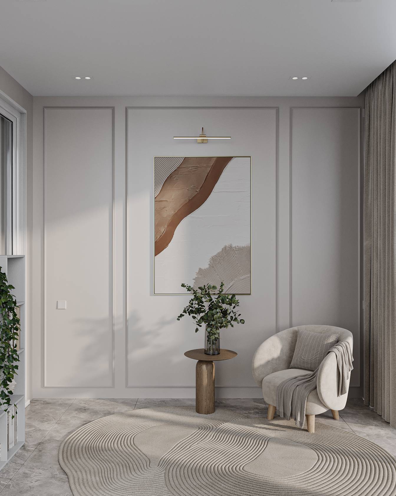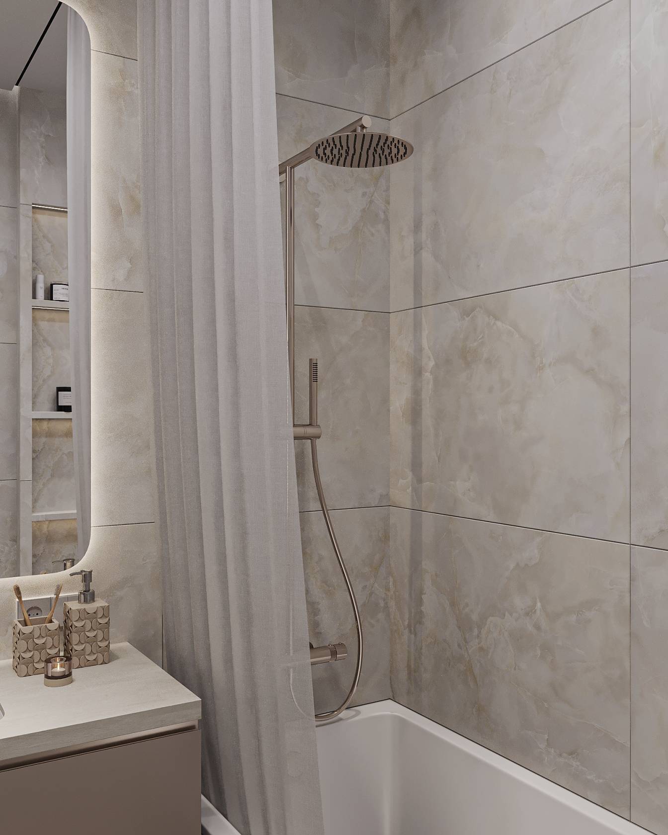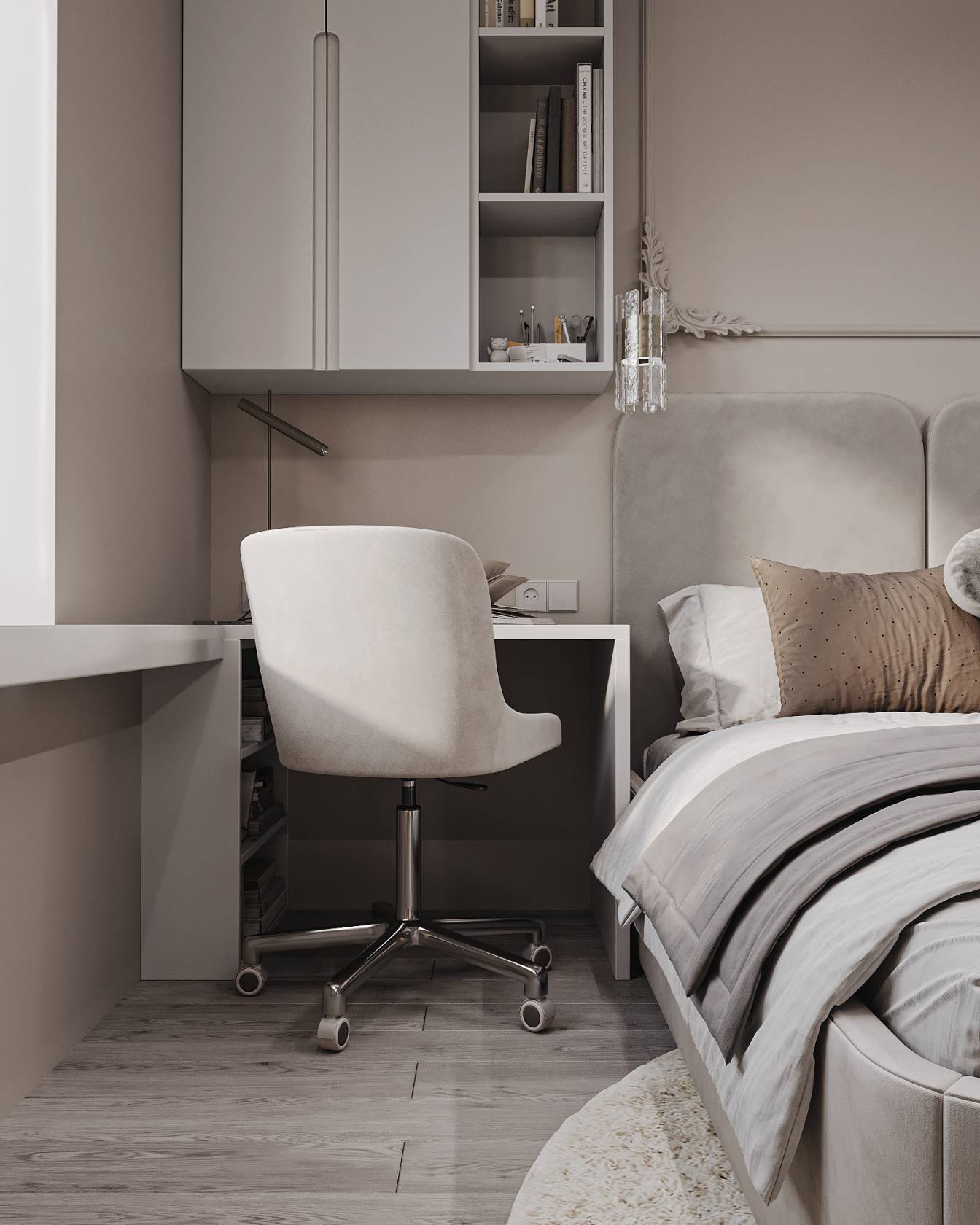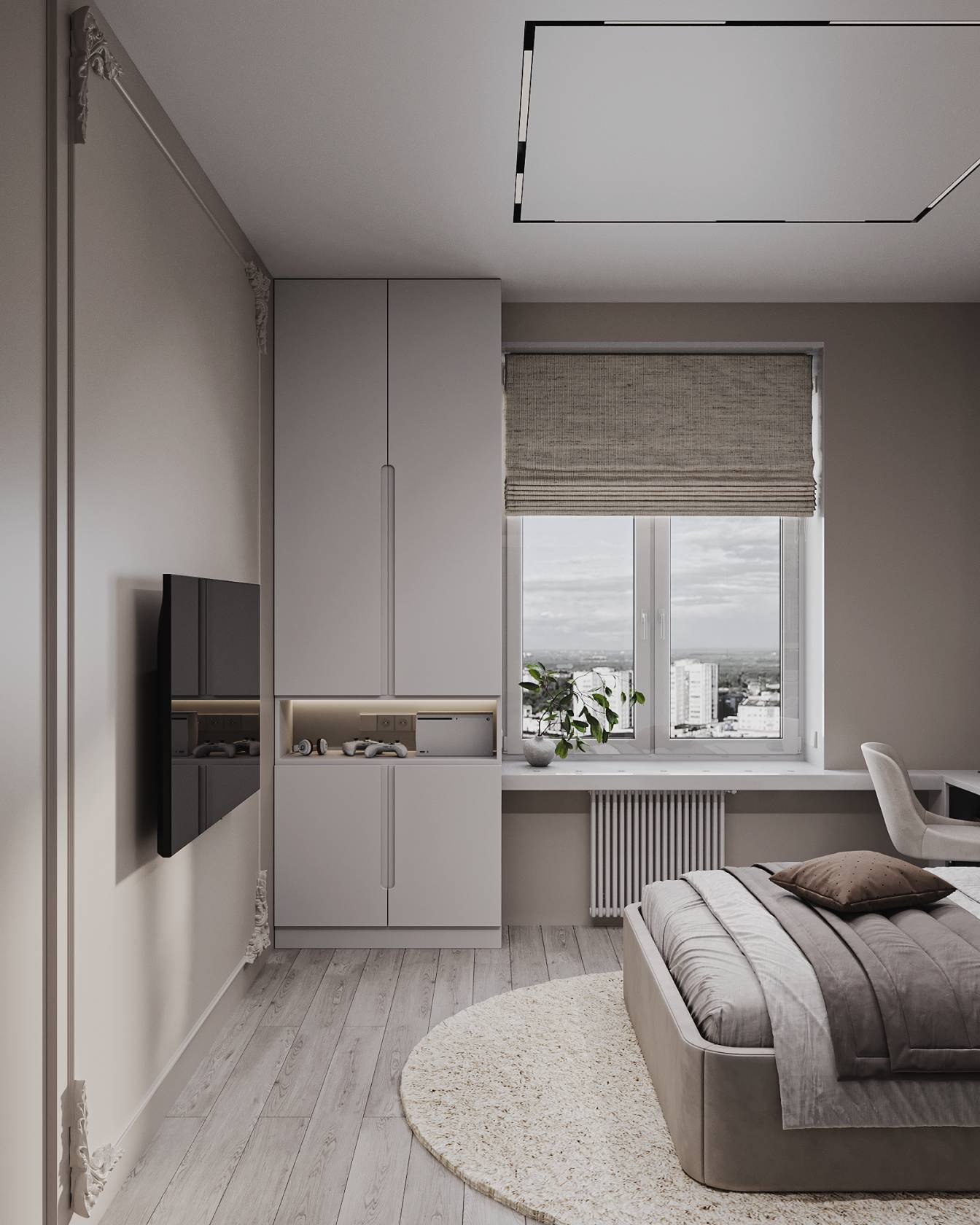 Проект квартиры в ЖК «Войстройченко 10» площадью 70 м² выполнен в современном стиле с акцентом на функциональность и комфорт. Пространство организовано логично и удобно для повседневной жизни. Кухня-гостиная совмещена, создавая просторную зону для общения и отдыха. Спальня и детская обеспечивают уединение и уют. Прихожая компактная, с достаточным местом для хранения. Санузел и ванная разделены для удобства всех членов семьи. Лоджия интегрирована в общий облик квартиры, расширяя жилое пространство.