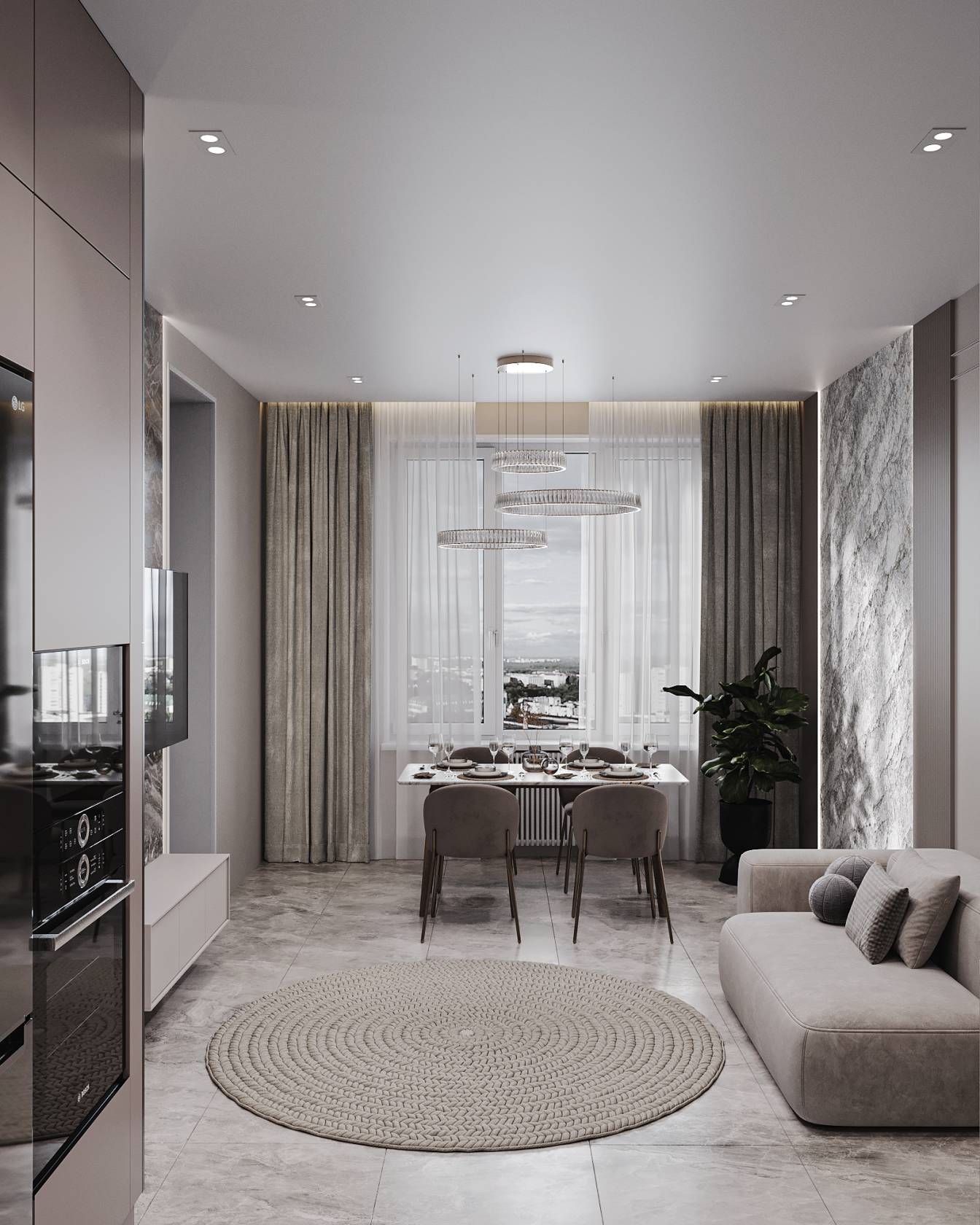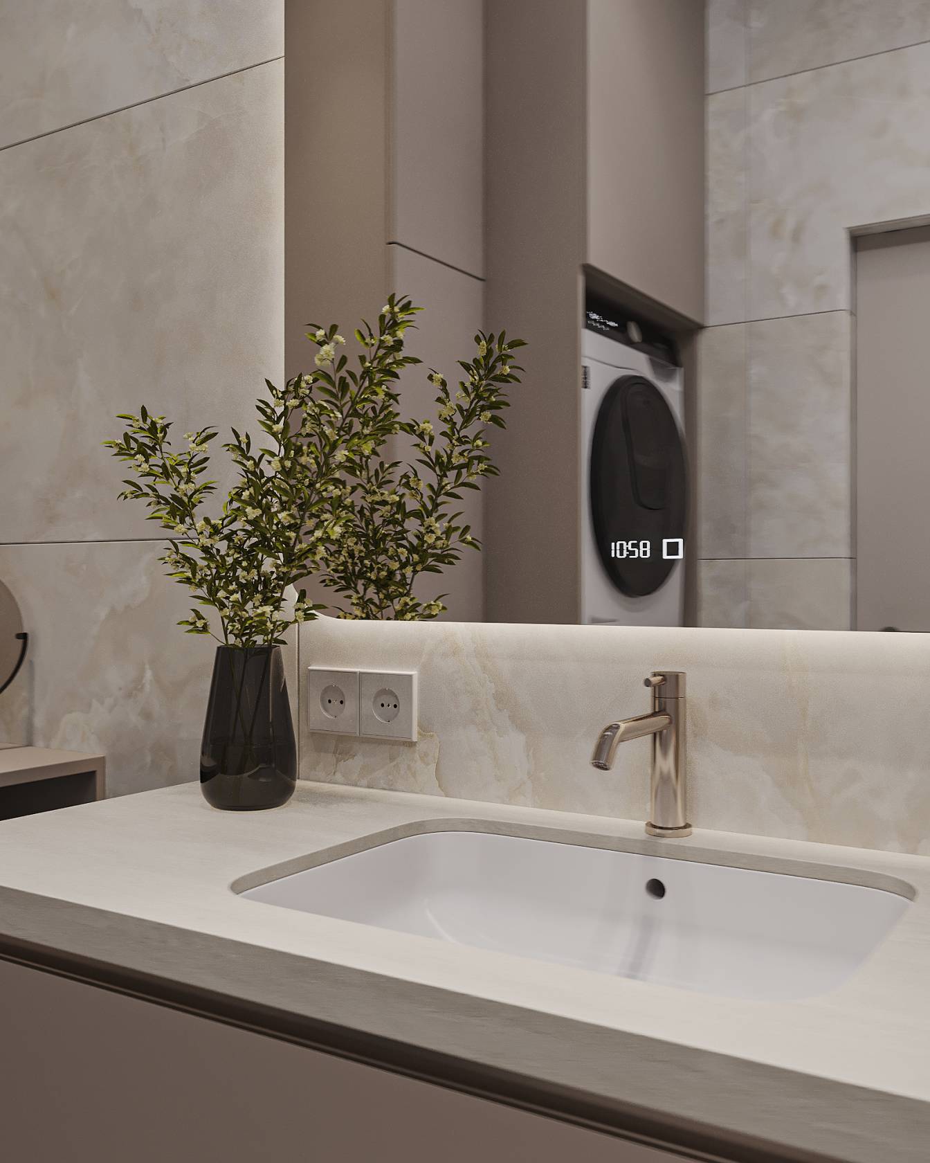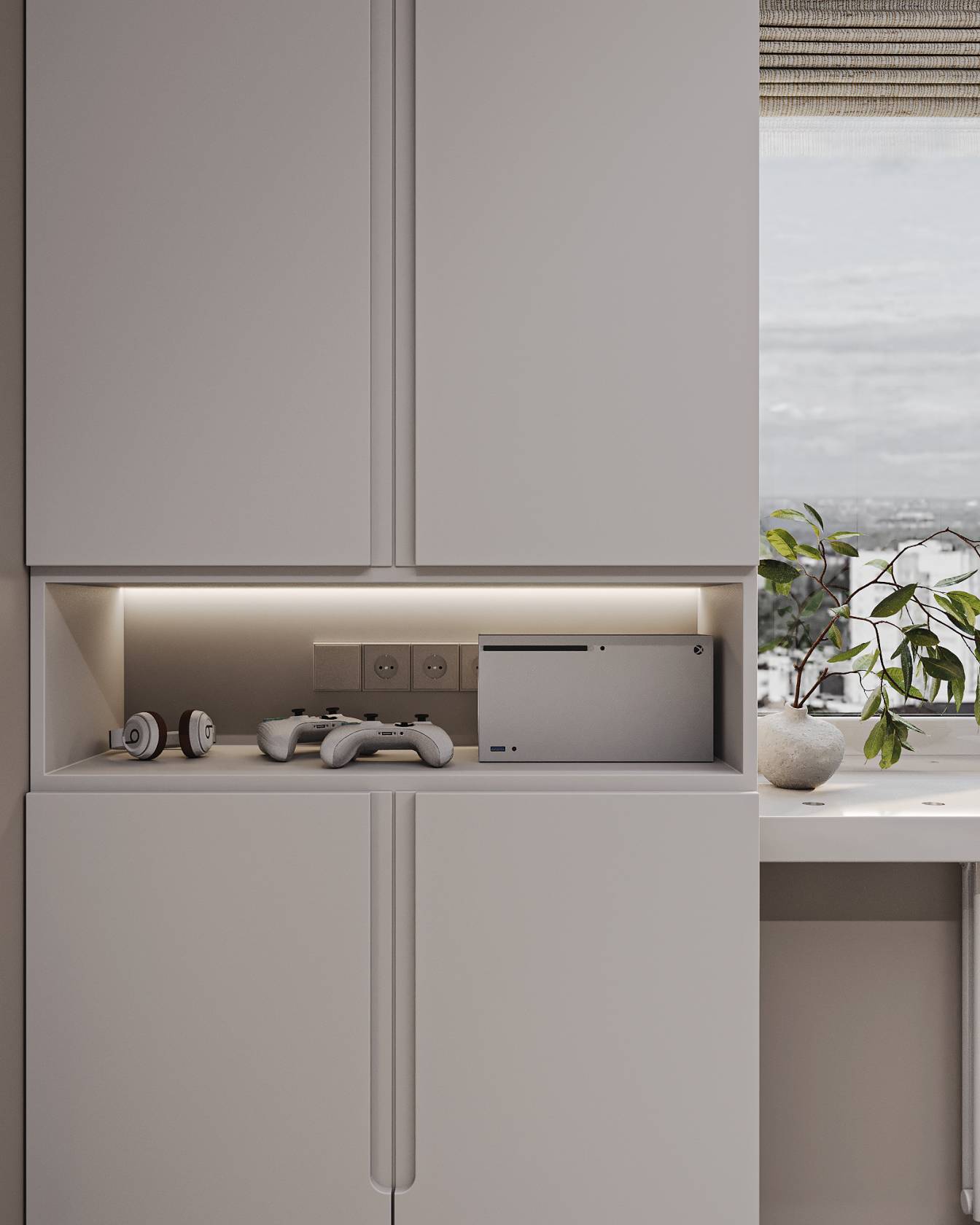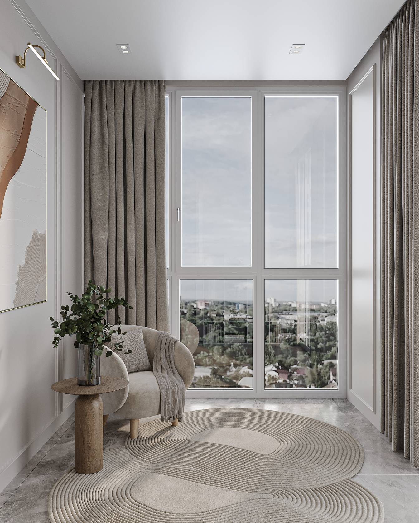 Проект квартиры в ЖК «Войстройченко 10» площадью 70 м² выполнен в современном стиле с акцентом на функциональность и комфорт. Пространство организовано логично и удобно для повседневной жизни. Кухня-гостиная совмещена, создавая просторную зону для общения и отдыха. Спальня и детская обеспечивают уединение и уют. Прихожая компактная, с достаточным местом для хранения. Санузел и ванная разделены для удобства всех членов семьи. Лоджия интегрирована в общий облик квартиры, расширяя жилое пространство.